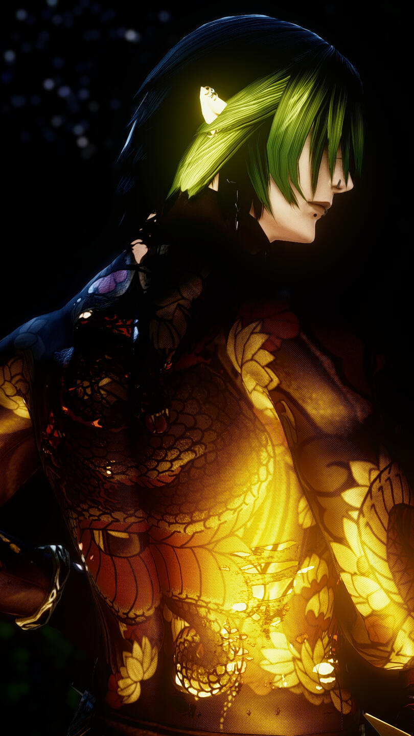Midori Han'nin is an enigmatic and alluring personality in the world of entertainment in Eorzea. There always seems to be more than meets the eye with this man, but nobody seems to have ever gotten close enough to see the full picture. A workaholic in the eyes of his colleagues, with never enough time for anything other than the next gig. Yet, it always seems like he's up to something new that nobody can figure out. As quick to leave a party as he is to finally arrive, Midori is a complete and utter mystery to those around him. Yet there's just something about him that always has those involved yearning to try and find out more.
